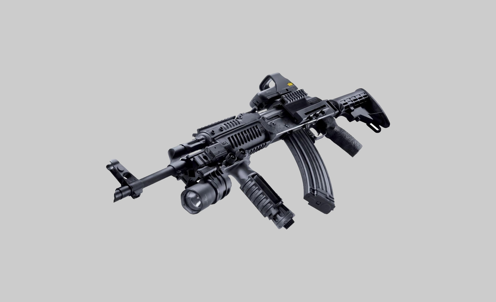 The forearm, magazine, buttstock, and pistol grip are made of high strength plastic and feature great durability to stress.