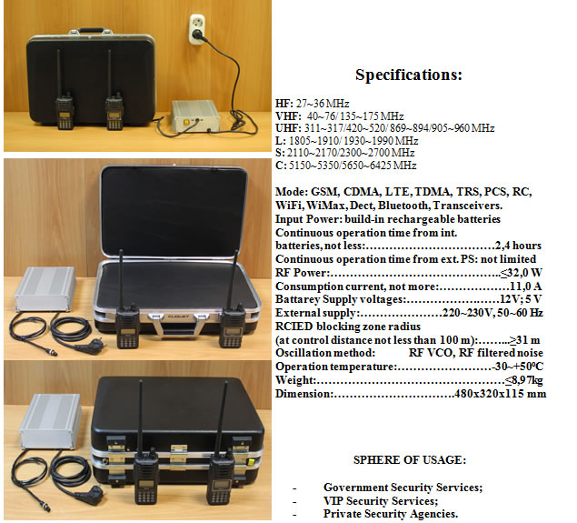 Mode : GSM, CDMA, TDMA, TRS, PCS, RC, WiFi, WiMax, Dect, Bluetooth, Transceivers, Input Power: via automobile electrical system
